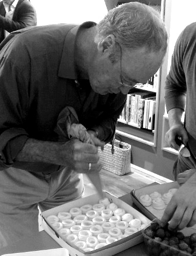 Cees Holtkamp spuit de limoncelloroom in de-mini polonaises (meringue)