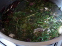 extra: restgroenten. Wij gebruikten nog 3 voorgeweekte gedroogde champignons en het kookvocht. Maar het kan vanalles zijn, het liefst iets met een karakteristieke smaak (prei, venkel, probeer wat uit!).