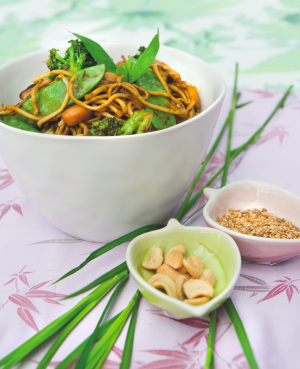 Vandaag gaan we de Aziatische toer op met noedels met gewokte groenten en nori-chips uit het boek Puur Plantaardig.