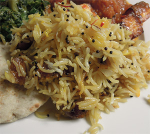 We hebben zin in weer eens flink wat specerijen en kruiden. Daarom maken we bij de panircurry geen gewone rijst, maar kruidige biryani.