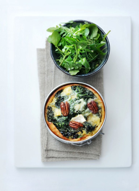 Ik ga niet zeggen dat de Vegatopiaredactie een halve fanclub van Yvette van Boven is, maar het gaat toch in de richting. Daarom kan een recept van haar ook niet ontbreken in dit weekmenu. Op haar website staat een mooi recept voor kleine spinazieclafoutis met brie en pecannoten. Dit is meteen een mooi gerecht voor een zaterdagavond. Lekker met een mesclunsalade. Mocht je een walnotenboom in de tuin hebben, vervang de pecannoten dan gerust door walnoten.