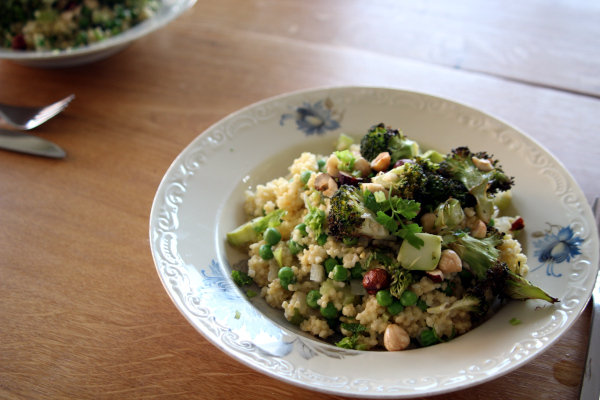 Gierst is een graan dat niet zoveel mensen kennen. Emma bedacht een 'risotto' van gierst met doperwten, broccoli en hazelnoten. De gierst neemt tijdens het koken de smaken van de groenten op.