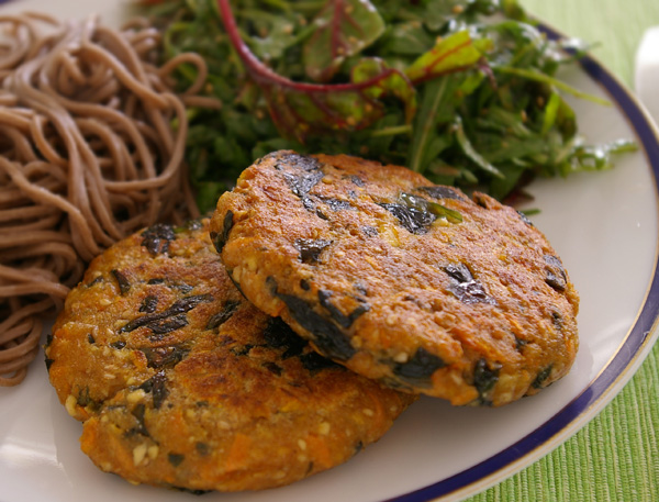 We hebben nog flink wat tofu over van gisteren. Deze verwerken we samen met onder meer wortel, gember, sesam en zeewier tot Oosterse burgers. Serveer met boekweitnoedels en een salade.