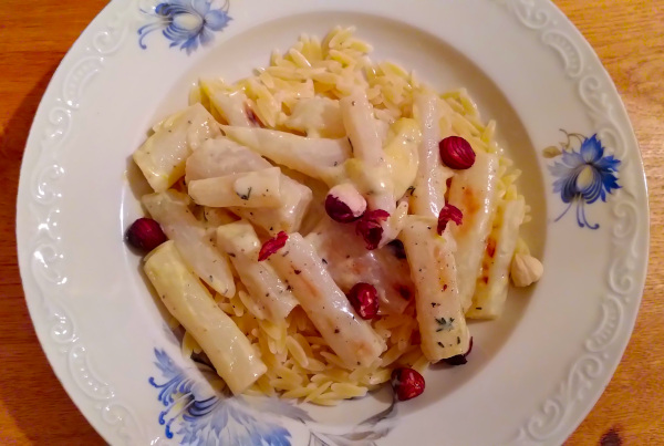 Schorseneren zijn in Nederland minder bekend en in België vind je ze ook steeds minder vers in de supermarkt. Totaal ten onrechte. Om iedereen op ideeën te brengen maken we orzo met schorseneren en hazelnoten.