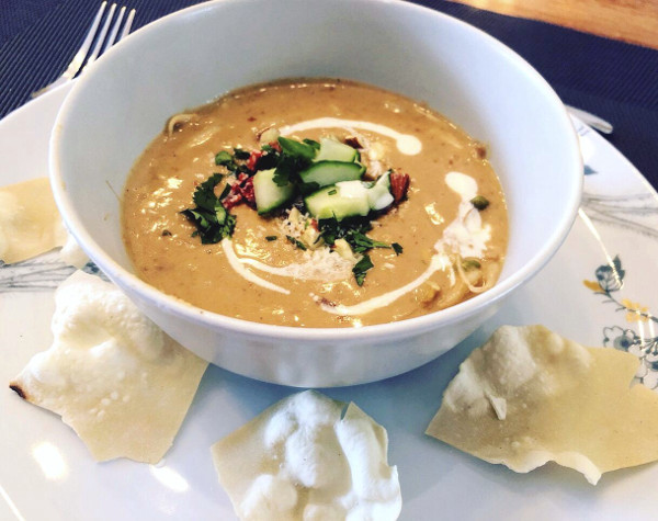 Pindasoep is zo goed als onbekend bij ons, maar in andere landen - zoals Indonesië en Suriname - is het een geliefd gerecht. Hedwig maakte een pindasoep met pittige topping, die kan als voorgerecht maar ook als hoofdgerecht met een kommetje rijst erbij.