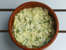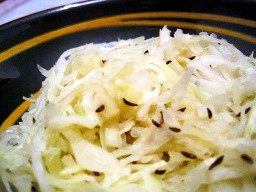 De wittekool in deze salade wordt lekker zacht en beter verteerbaar door ze vooraf met zout te behandelen. De salade is heel makkelijk te maken, maar begin ruim van tevoren zodat het zout de tijd heeft om zijn werk te doen: na zes uur intrekken is de kool goed bruikbaar, maar nog lekkerder wordt het als je het een hele dag de tijd geeft.